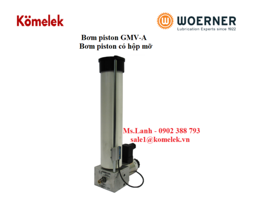 Bơm piston GMV-A có hộp mỡ -WOERNER Chính hãng. nhỏ gọn được dẫn động bằng nam châm điện hoặc khí nén và thường được sử dụng để bôi trơn chính xác nhờ truyền động gián đoạn.