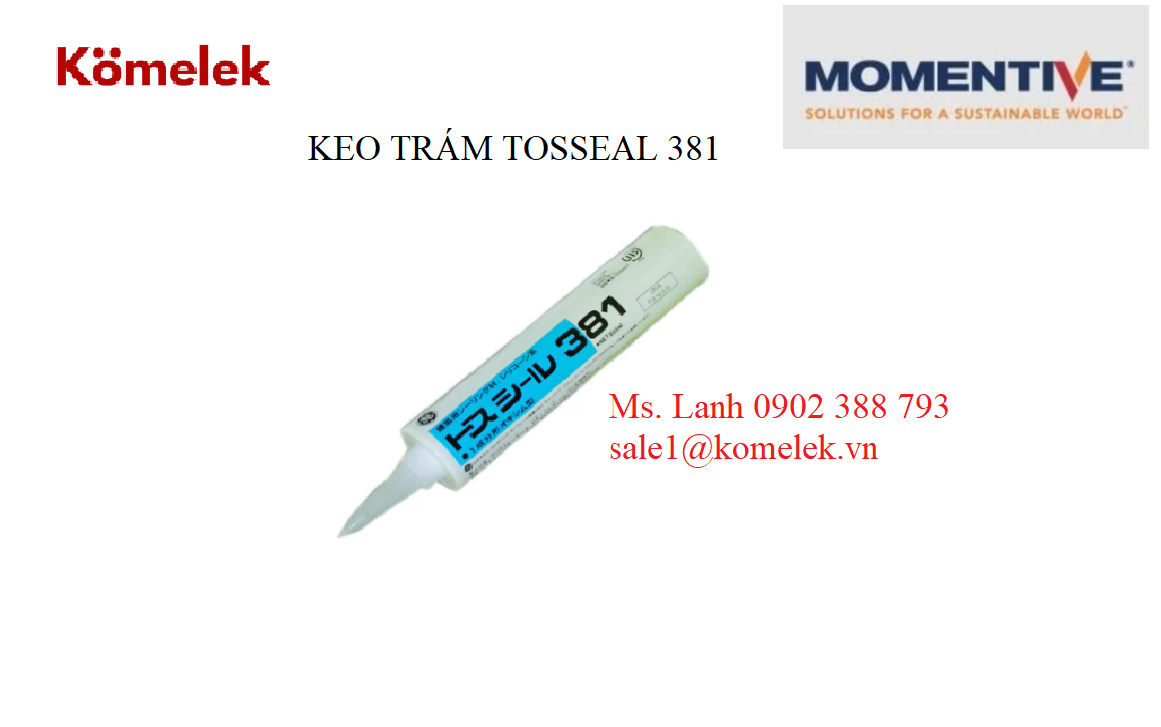 Keo trám silicon Tosseal 381 Momentive. TOSSEAL 381 là chất trám silicone một thành phần, đóng rắn thành cao su silicone có mô đun cao khi tiếp xúc với độ ẩm không khí ở nhiệt độ phòng.