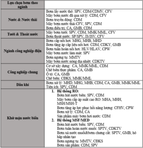Máy bơm Torishima được ứng dụng trong: