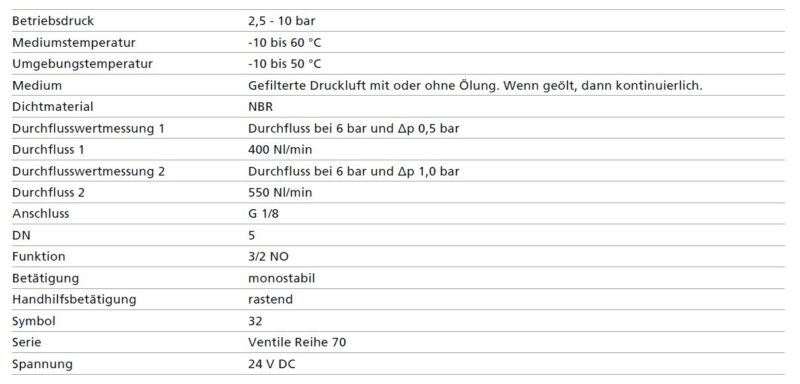 Van 3/2 chiều, điện-khí nén, đơn ổn, G 1/8, NO, 24 V DC, áp suất vận hành. 2,5 – 10 thanh, nhôm